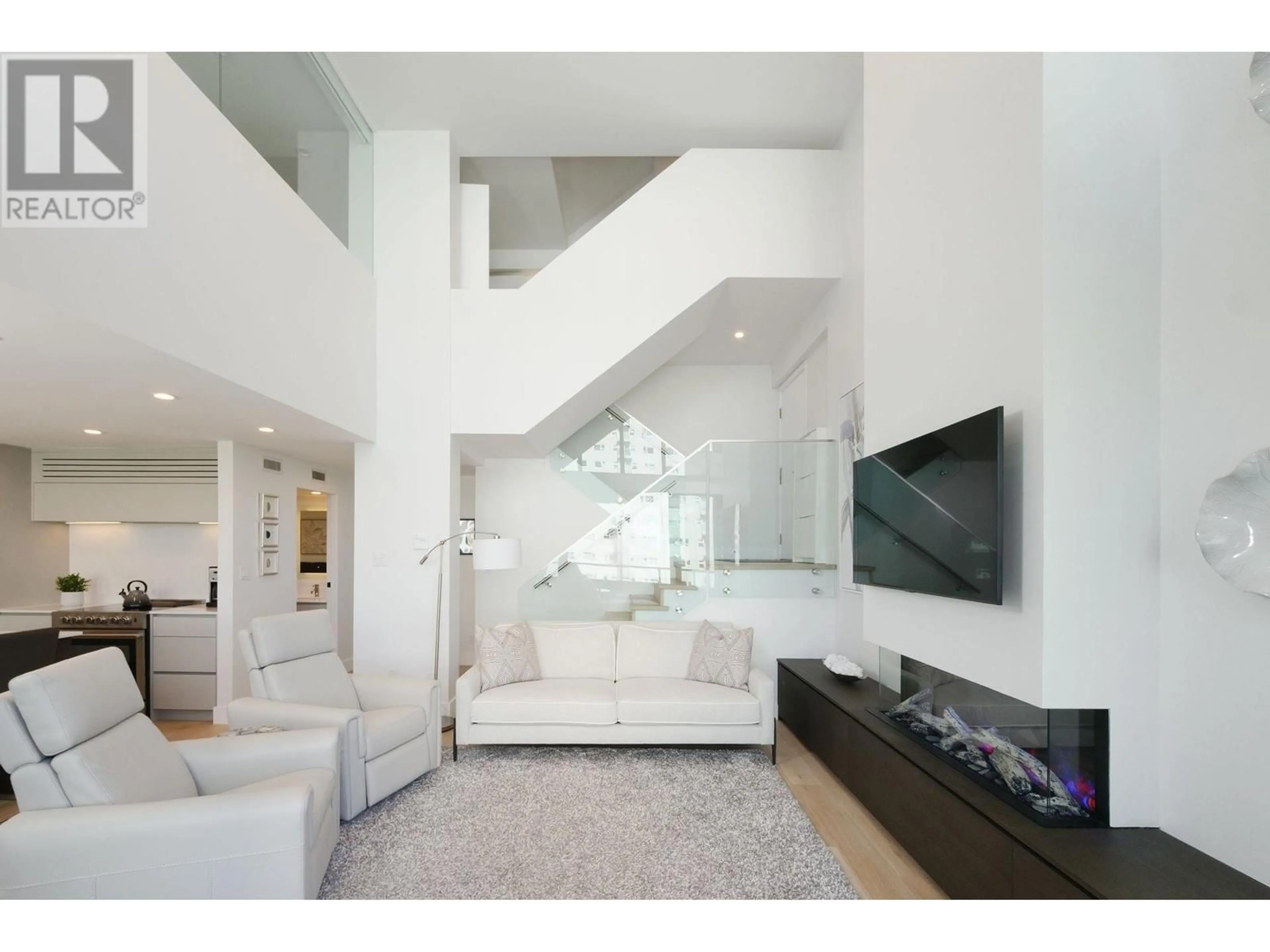 Welcome to Alexandra Park, a rare air conditioned West End offering with breathtaking English Bay views. This fully renovated 2 bed, 2 bath split-level home blends sophistication with comfort - featuring soaring 16ft ceilings, a sun-drenched ocean view terrace, and a sleek chef's kitchen with Caesarstone counters, premium appliances, wine fridge, and large island. Upstairs, a luxurious primary suite awaits with spa-like ensuite and huge walk-in closet. Includes 2 EV compatible parking stalls AND storage. Impeccably maintained in an unbeatable location - this is West End living at its finest. Don't miss this exceptional opportunity! (id:39198)
