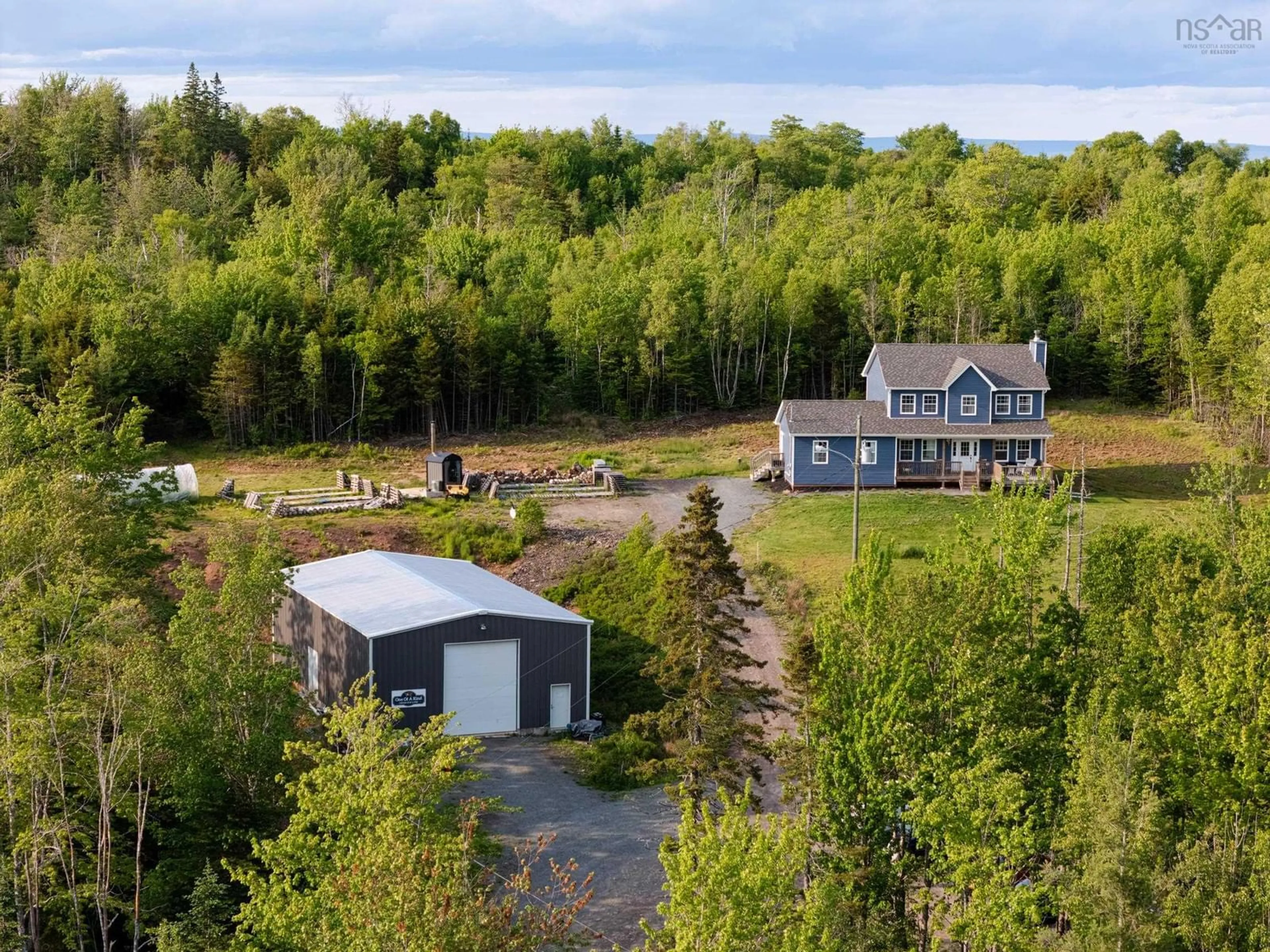Built just four years ago, this custom home sits on 72 private acres along the Minas Basin, home to the world’s highest tides. Designed for both comfort and long-term durability, the home features reinforced concrete floors on each level and an innovative exterior wood boiler system that provides efficient in-floor heating throughout both the home and the large detached shop. The system requires just one daily load while keeping the fire safely away from the residence. The property is extremely comfortable as-is, but also offers excellent potential to move toward complete off-grid living with the addition of solar. Inside, you’ll find over 3,500 square feet of finished living space across three levels. The main floor features an open-concept kitchen with an oversized island, custom dining area, spacious living room, private office, full bathroom and a main-level bedroom currently used as a home gym. Upstairs includes a generous primary suite with walk-in closet and ensuite bath, two additional bedrooms, another full bath and a dedicated laundry room. The lower level offers a large second living area, additional bedroom, full bath and an impressive craft or hobby space perfect for creative projects. The fully insulated, wired, steel-framed 35’ x 60’ shop is heated with in-floor heat and has its own 200 AMP service. It’s ideal for tradespeople, hobbyists or anyone in trucking or construction, with enough space and infrastructure to support a business or future conversion to living space. GR zoning allows for additional dwellings, and a private path leads to the water’s edge, perfect for adding a bunkie or viewing platform to enjoy the dramatic tides and coastal setting. Located just an hour from Halifax and Wolfville, this property offers privacy, flexibility and real long-term value.