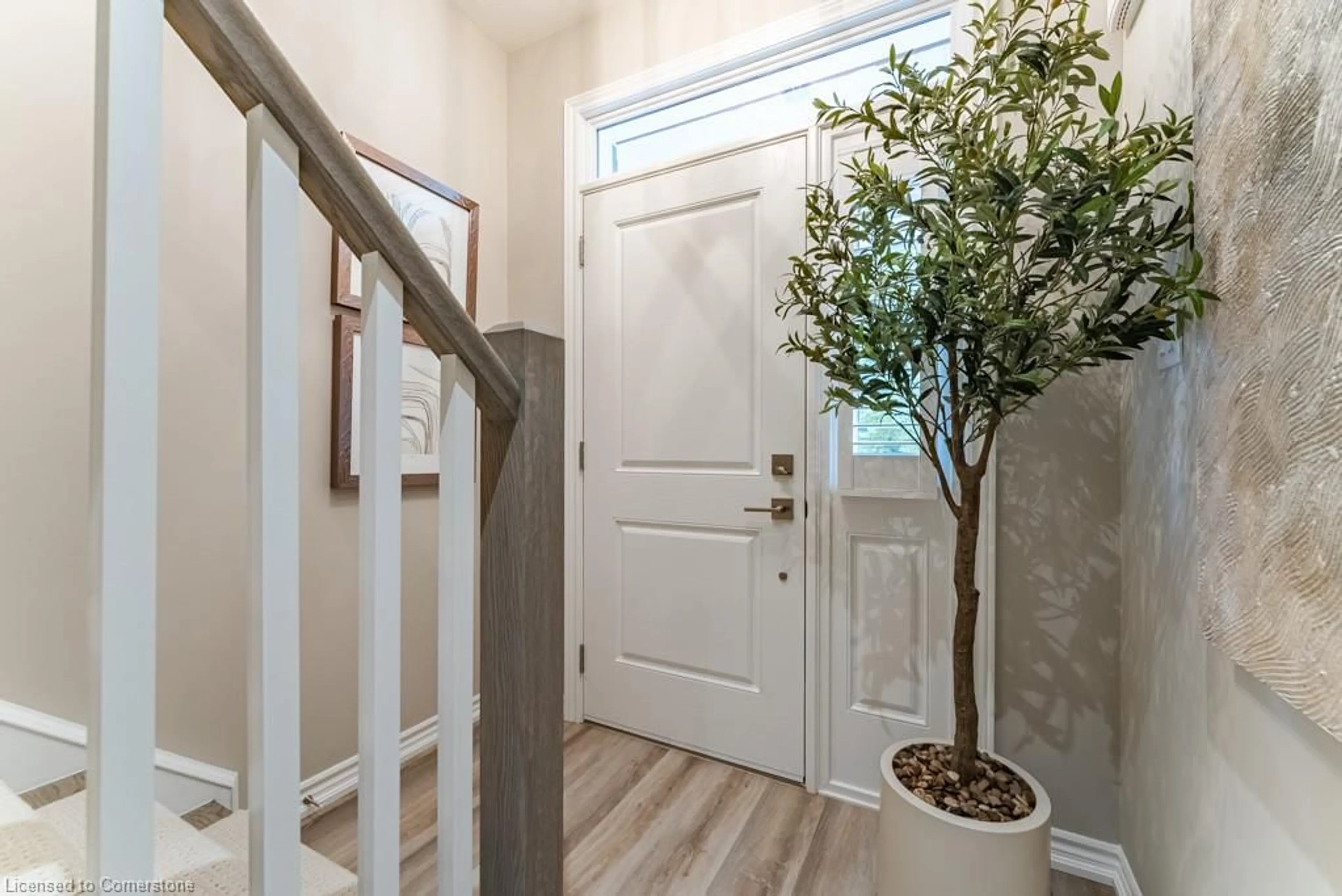 This stunning 3-bedroom, 3.5-bathroom, 3-storey townhome is ideally located just a short walk to downtown, the lake, scenic bike paths, and an abundance of parks and recreational amenities. Inside, youll find an inviting blend of style and function with elegant finishes throughout, including a second-floor living area designed for both everyday living and entertaining with a custom fireplace, built-in cabinetry, window shutters, and a convenient 2-piece powder room. The chef-inspired kitchen is a true highlight, featuring a large island with seating, premium stainless steel appliances, under-cabinet lighting, and a spacious dining area with built-in storage, plus direct access to a private sun-filled patio with retractable awning. Each bedroom offers the convenience of its own ensuite, with two bedrooms and laundry on the third floor and a versatile bedroom or office space on the main level. The unfinished basement includes custom wood shelving for additional storage or a potential recreation room, while the rare 2-car garage with interior access and private driveway provide ample parking. Only six years old and meticulously maintained, this home delivers low-maintenance luxury living in a quiet, welcoming community that perfectly blends indoor comfort with an active outdoor lifestyle.