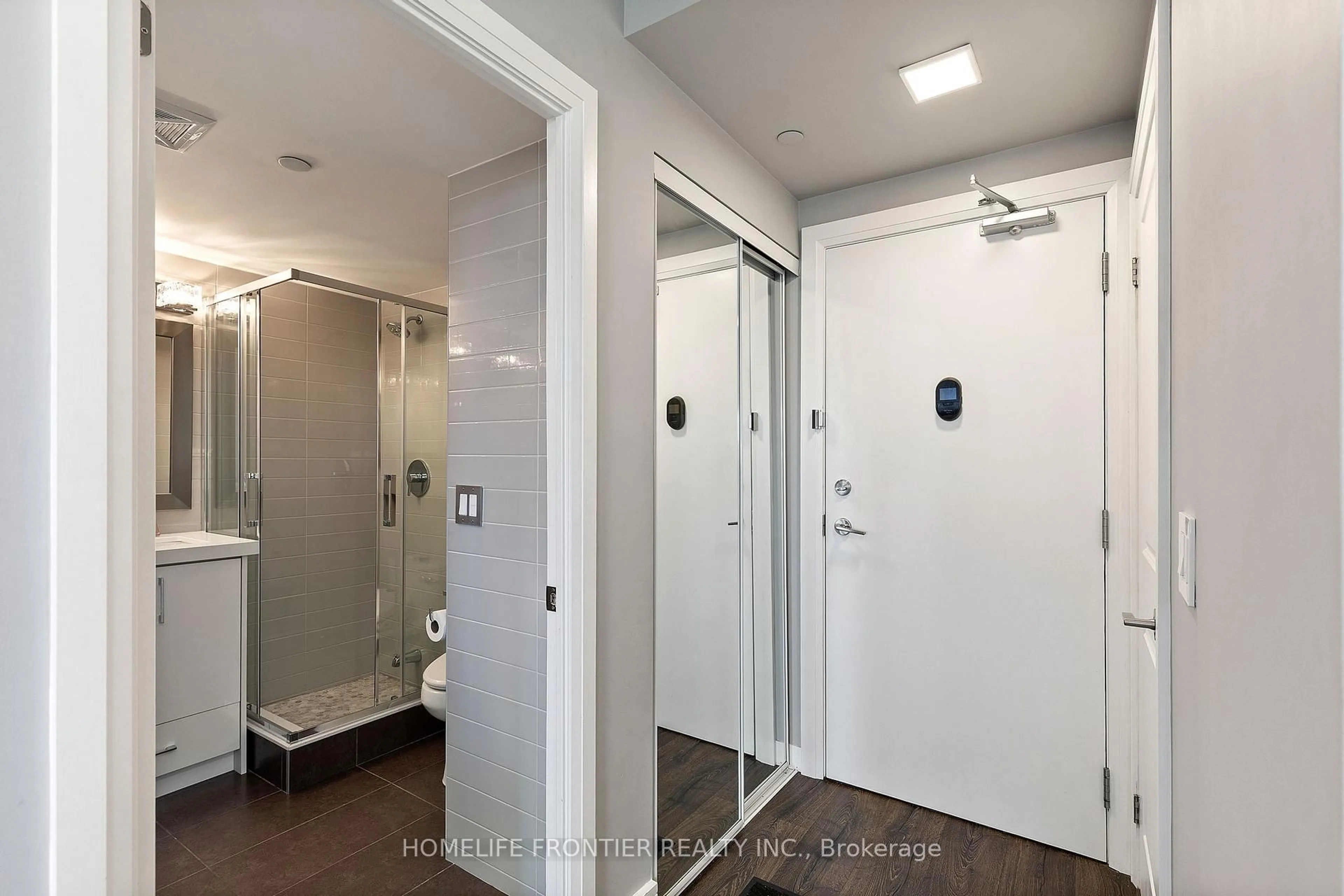 **EXTRAS** TWO (2) Parking Spots + TWO (2) Lockers. This spacious and modern 830 sq. ft. condo is impeccably maintained and thoughtfully upgraded throughout. Enjoy an impressive over 450 sq.ft. of private outdoor space with a breathtaking, unobstructed southwest-facing view of the city skyline perfect for year-round BBQs and relaxing on your expansive terrace. Included are two side-by-side parking spots on P1, conveniently located next to the elevator, along with two premium storage lockers: one on the same floor, ideal as a pantry or for additional storage, and a second located in the basement locker room. Stylish updates include a fully renovated guest bathroom with a custom-made vanity and mirror, modern sink and faucet, chic vanity light, and a brand-new toilet. The kitchen is outfitted with premium stainless steel KitchenAid appliances, upgraded cabinetry with new hardware, elegant granite countertops with matching backsplash and waterfall edge, plus a new sink and faucet. The living area features new laminate flooring, 5" wood baseboards and trim, bright LED ceiling lights and pot lights, and a custom-built TV wall unit. The primary bedroom offers a custom-designed closet system with sleek sliding doors, while the ensuite bathroom has been fully remodelled with a walk-in shower and bench, new toilet, integrated sink vanity, and a stylish mirror. The building offers a range of top-tier amenities, including a fully equipped gym, sauna, party room, bike storage, and a rooftop terrace with panoramic views. Your guests will appreciate the underground visitor parking. The building is pet-friendly and home to a warm, welcoming community with fantastic neighbours.