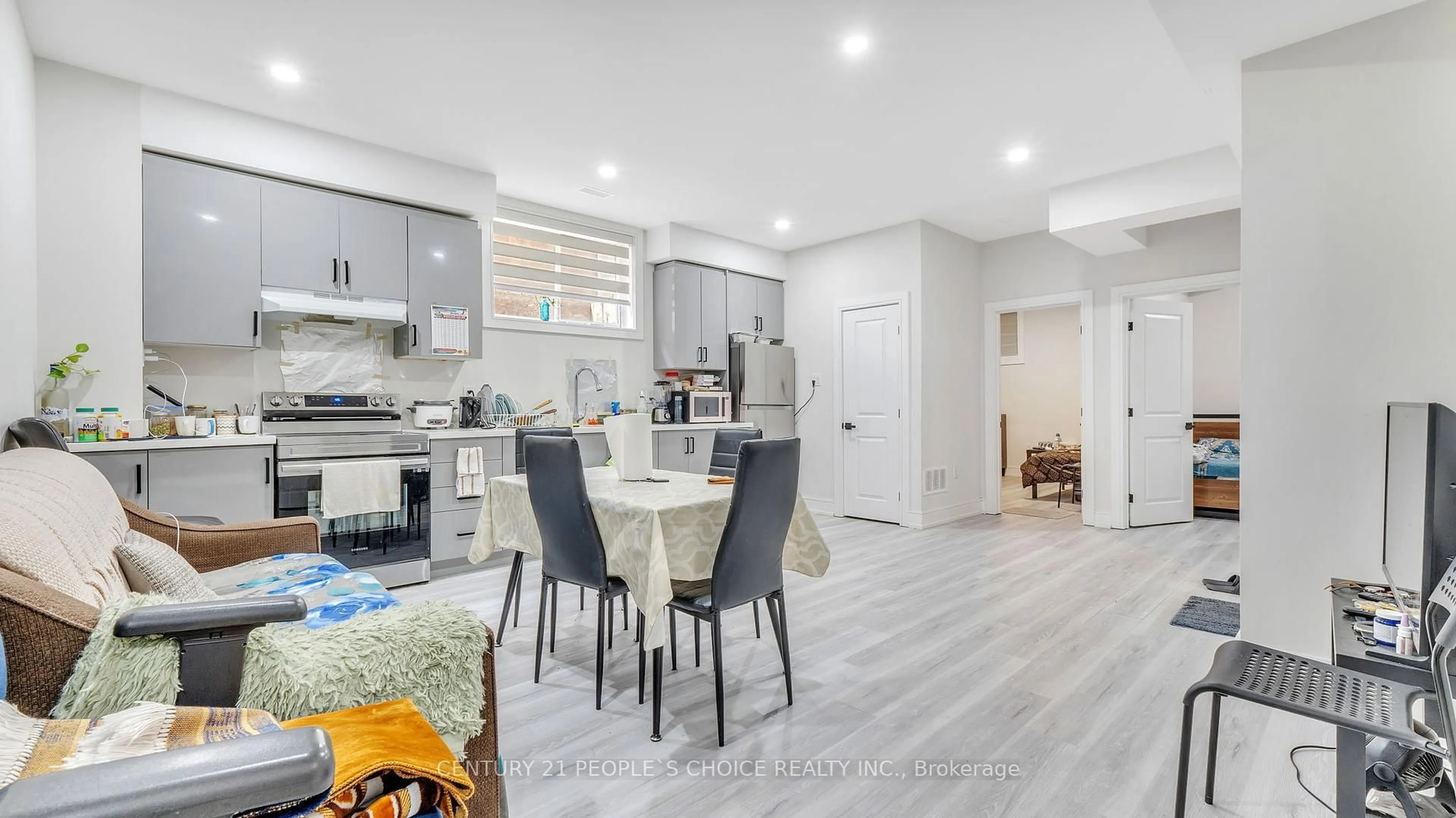 Welcome to 54A Butterworth Avenue, a contemporary gem nestled on a tree-lined street in Toronto's sought-after Oakridge/Cliffside community. This meticulously crafted home offers the perfect blend of modern elegance and smart functionality. The striking exterior showcases a sophisticated mix of stone, wood accents, and smooth stucco. Step inside to a tiled foyer with a generous double closet for coats and boots. The open-concept main floor is bright and airy, featuring sleek glass railings that lead to an upper-level family room an inviting, sun-drenched space with a large south-facing window, built-in shelving, and plenty of room to relax, play, or gather. Back on the main level, the upgraded kitchen is the heart of the home, complete with tall soft-close cabinetry, stainless steel appliances, and a large island that seats three perfect for both everyday living and entertaining. The adjoining dining/living area opens onto a rear deck through sliding glass doors, ideal for indoor-outdoor living and also features soaring 14-foot ceilings and a cozy fireplace, creating a warm and inviting atmosphere. Upstairs, a large skylight fills the hallway with natural light. The second-floor laundry is tucked behind double doors for easy access. The spacious primary bedroom fits a king-size bed and full furniture set with room to spare, and is complemented by a luxurious 5-piece ensuite and a walk-in closet with custom organizers. Two additional bedrooms share a stylish semi-ensuite, while a fourth bedroom has its own private 4-piece bath and double closet ideal for guests or a home office. A separate side entrance leads to a beautifully finished lower-level suite, featuring a full kitchen, two bedrooms, 3-piece bath, and ample storage perfect for extended family or rental income. This is more than just a home its a rare lifestyle opportunity in one of Toronto's vibrant, growing communities.