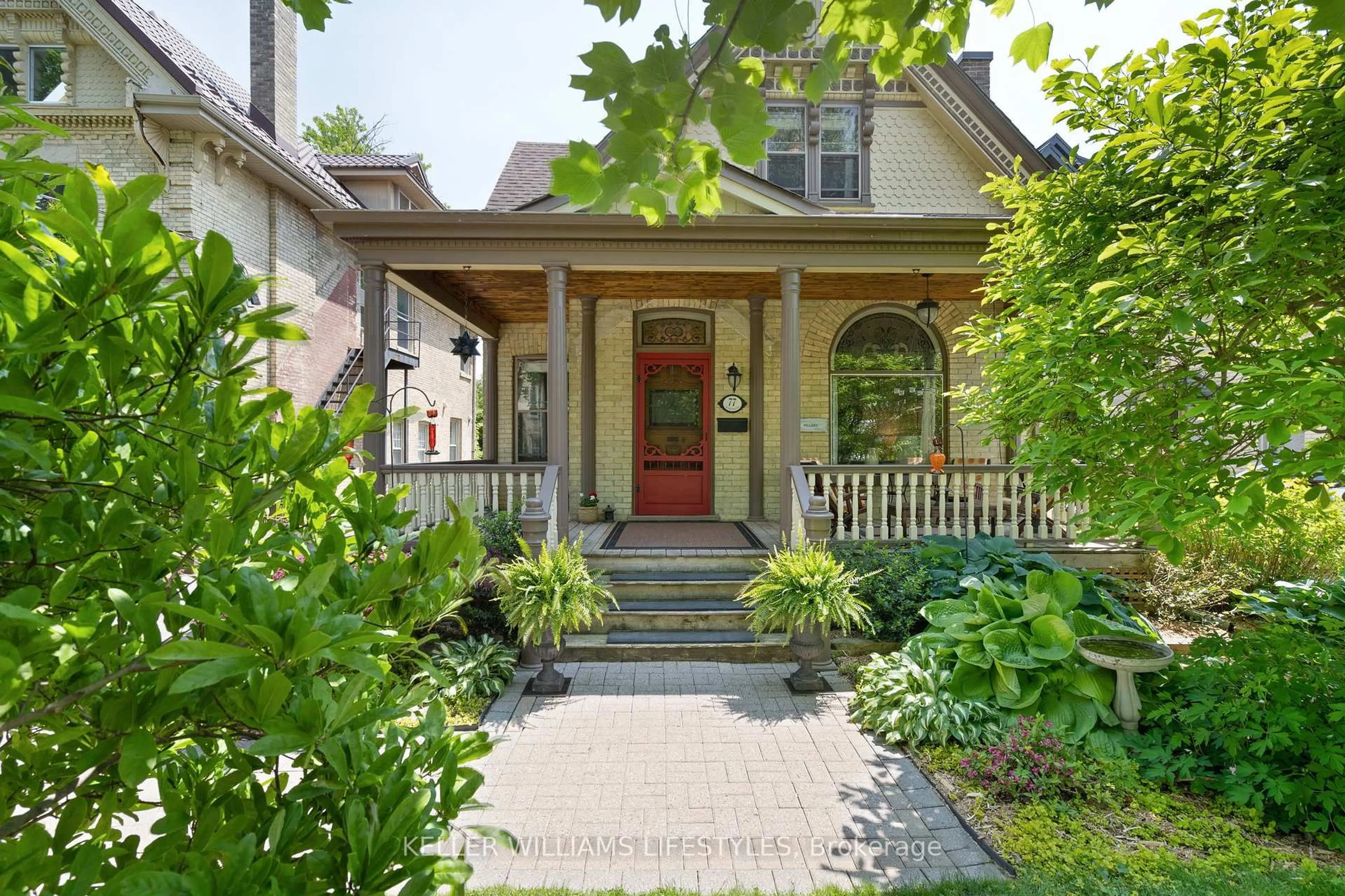 Welcome to 77 Byron Ave East! Built in 1895, this 1.5 Storey Home is the quintessential Wortley Village character home with fabulous curb appeal that you've been waiting for! Within close walking distance to great coffee shops, restaurants, shopping, and parks, you'll love the close proximity to amenities! Lovingly maintained by the current owners for over 35 years, this home is filled with charm, including a spectacular covered porch, gorgeous stained glass, original coal burning fireplace, and beautiful pine floors. Featuring 4 Bedrooms, 1.5 Bathrooms, a Single Car Garage with 200 amp service. As you enter the home you'll be greeted by a foyer with custom built-in entryway storage, and a stunning front sitting room with gorgeous stained glass, a custom tin ceiling, and the original beautiful pine floors. The large living room and dining room filled with original trim and wood details lead to the spacious kitchen that overlooks the backyard. In the kitchen you'll find some beautiful exposed yellow brick. The main floor also has a convenient half bathroom with laundry combination, as well as a main floor office which could easily be used as a main floor bedroom. Upstairs, you'll find three generous sized bedrooms, including the primary bedroom, as well as the main bathroom. There's also a large walk in cedar lined closet in the upper level for additional storage. The lush and private backyard will be an oasis where you'll appreciate the peace of listening to the birds, and you have lots of space to entertain on your patio and enjoy outdoor meals under the pergola. With parking for 5 cars, plus a single car garage you will have plenty of parking. The garage has 200 amp service and could also be used as a great workshop! Lots of updates in recent years include:New A/C (2021), New Furnace (2022), Garage Roof (2020), Brick Pointing (2020), Chimney rebuild (2020), Water Proofing Foundation (2019), Driveway Paving (2019), Porch Rebuild (2019).