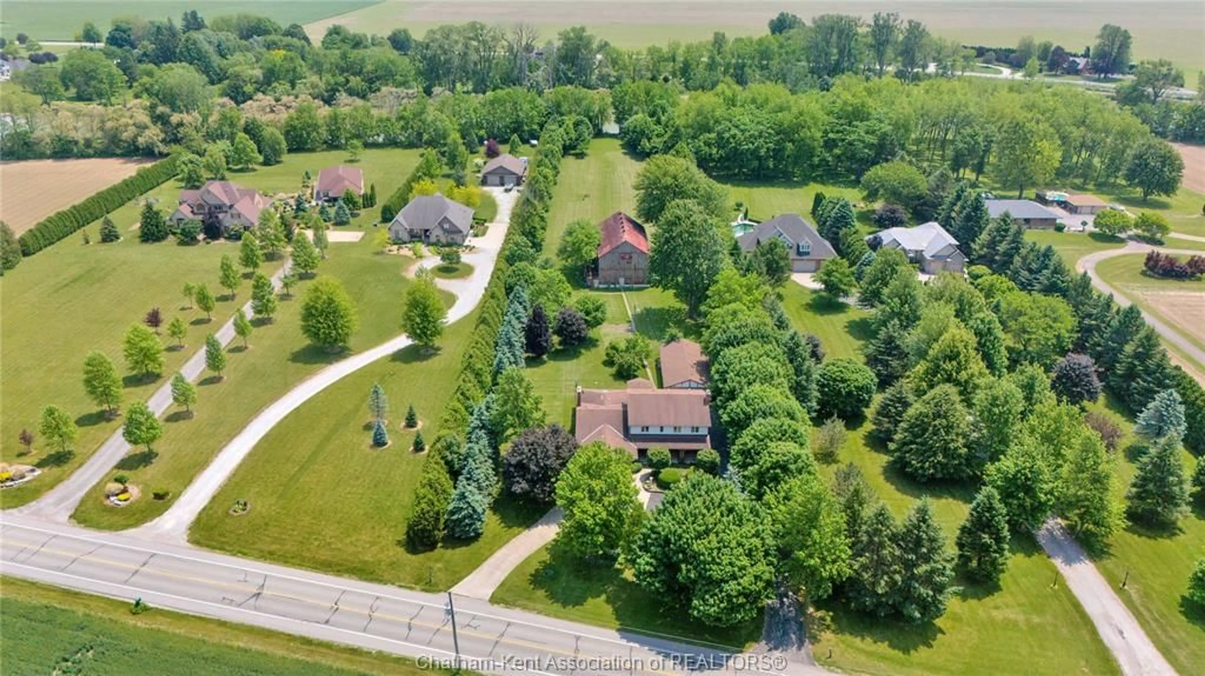 Welcome to a rare estate ownership opportunity along the scenic Grande River Line—this custom built timeless architectural design 2-storey double car garage home rests on nearly 3 acres of beautifully maintained land with privacy mature tree screening, offering tranquility, as well as a wealth of development potential. Inside the existing home, you'll find 4 spacious bedrooms, including a large primary suite with its own shower ensuite bath. The main floor layout blends function and comfort with its large great room, formal living and dining areas, and a spacious sit-in bright kitchen that opens to the morning sunrise and rear yard views. This home also features an all season sunroom escape overlooking the manicured rear yard property. The lower level layout functions with a second food prep area, a large cold storage area, and an extensive office area with direct access to the exterior via walk up steps—ideal for visitors and professional work use. Outside the home, you’ll find lots of parking spaces with a circular asphalt and concrete driveway, plus a detached two car garage and workshop area with its own source of high voltage hydro. A real bonus is a huge storage barn located on this property, character-filled that adds extra charm and utility—perfect for hobby use, storage, or conversion. Step into the peaceful backyard oasis featuring a lovely gazebo, perfect for relaxing, entertaining, or enjoying river views. The home is connected to municipal water, but also includes a private well on the property, offering added utility and flexibility. Imagine all of the benefits of owning this estate property that backs onto the Thames River with mature trees and a canvas for your endless creative ideas, only minutes from everything including shopping, amenities and the downtown Chatham core .
