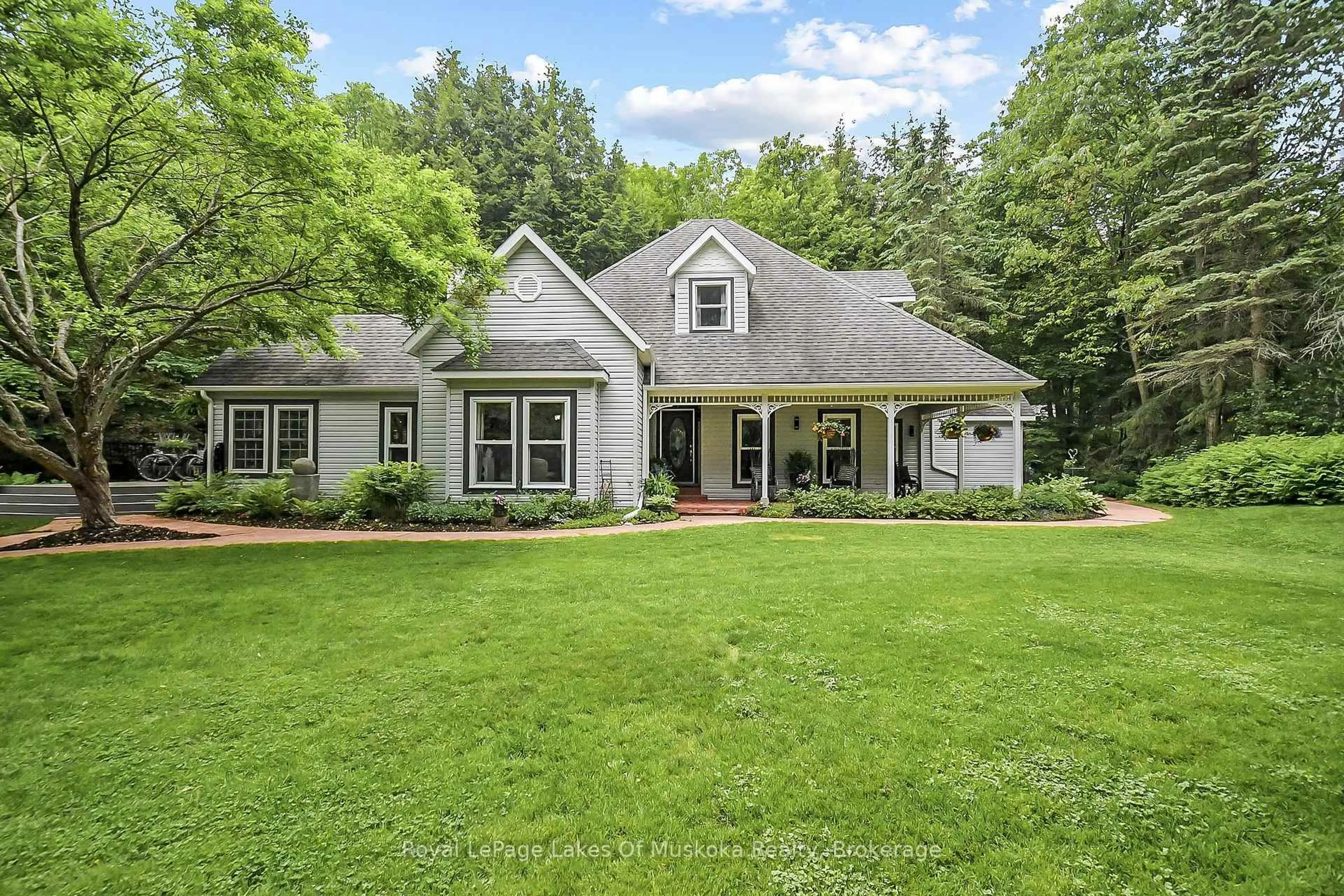 EXCEPTIONAL IN TOWN, WATERFRONT PACKAGE -Yr Rd Waterfront Home on the Muskoka River189' Frontage |0.85AC|4 Beds|2 Baths|In-Town Services|Boating to the Big Lakes - Welcome to a truly exceptional offering in the heart of Bracebridge! Tucked away on a private 0.85-acre lot with 189 feet of pristine Muskoka River frontage, this custom-built, year-round home offers the perfect blend of in-town convenience and peaceful, country-like privacy. Thoughtfully designed and lovingly maintained by the original family, the home features 4 spacious bdrms and 2 full bathrms. Elevated ceilings soar up to 12ft in areas, creating a bright and airy atmosphere, while a cozy wood-burning fireplace anchors the living space. Recent updates include fresh paint, a new dishwasher, microwave, and oven, and reliable fiber optic internet, phone, and TV service ideal for working or streaming from the comfort of your riverside retreat. Step outside and take in the serene river views from your covered porch or sun deck, or head out to your private river deck and sandy beach with a deep-water dock - perhaps the nicest on the river-and perfect for swimming, lounging, or boating. The spacious dock and large deck over the river were upgraded in 2018 as was the separate detached 2 1/2 car garage. What truly sets this property apart is its unique location on the south branch of the Muskoka River, offering protected boating, kayaking, and paddleboarding adventures on a quiet section of the river leading to the enchanting South Falls, all while still connecting you to the big lakes: Muskoka, Rosseau, and Joseph. Just minutes from downtown Bracebridge on full municipal services, yet you'll feel worlds away surrounded by environmentally protected land to the south and west with no possibility of future development. Whether you're seeking a year-round home, cottage retreat, or legacy family property, this one is unlike anything else on the market. Come experience this remarkable property first hand!