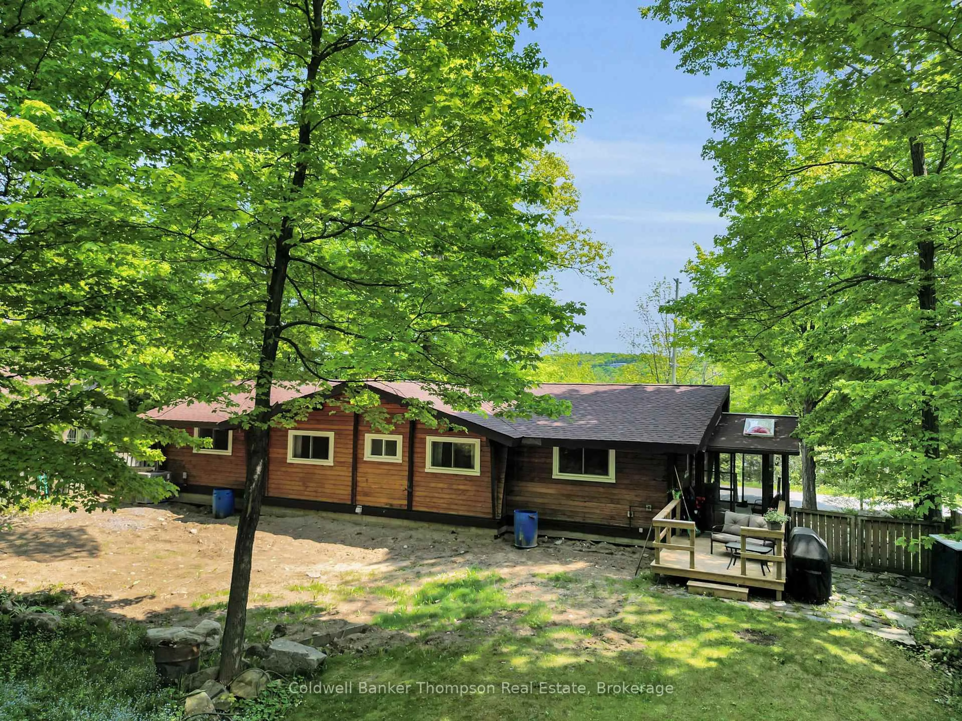 Charming Panabode Home with Cottage Feel in Prime Huntsville Location. Welcome to 254 Lakeshore Road nestled in one of Huntsvilles most desirable neighbourhoods, this home offers a warm, cottage-inspired feel with the conveniences of in-town living. Featuring 3 spacious bedrooms and 2 bathrooms, this property is perfect for families, retirees, or anyone looking to enjoy the Muskoka lifestyle year-round. Step inside to discover a welcoming layout with spacious living and dining room combination with soaring ceilings and cozy gas fireplace, the kitchen is a great size with plenty of cupboard and counter space, the main floor laundry is a bonus, a bright and airy three-season sunroom with walkout to a small back deck, and a partially finished lower level walkout ideal for a future in-law suite or additional living space. The private, well-treed, fully fenced backyard spans nearly half an acre, offering plenty of room for relaxing, entertaining, or gardening. Recent updates include roof shingles, furnace, A/C, and humidifier (2021), carpet (2022), and a comprehensive basement waterproofing completed in 2025. Enjoy views of Hunters Bay and close proximity to the Vernon Narrows, with access to a dock and water just moments away. This property is connected to municipal services and is located just minutes from downtown Huntsville, schools, shops, the Active Living Centre, Algonquin Theatre, restaurants, and more. Whether you're looking for a year-round home or a Muskoka getaway with potential, 254 Lakeshore Road offers the best of both worlds.