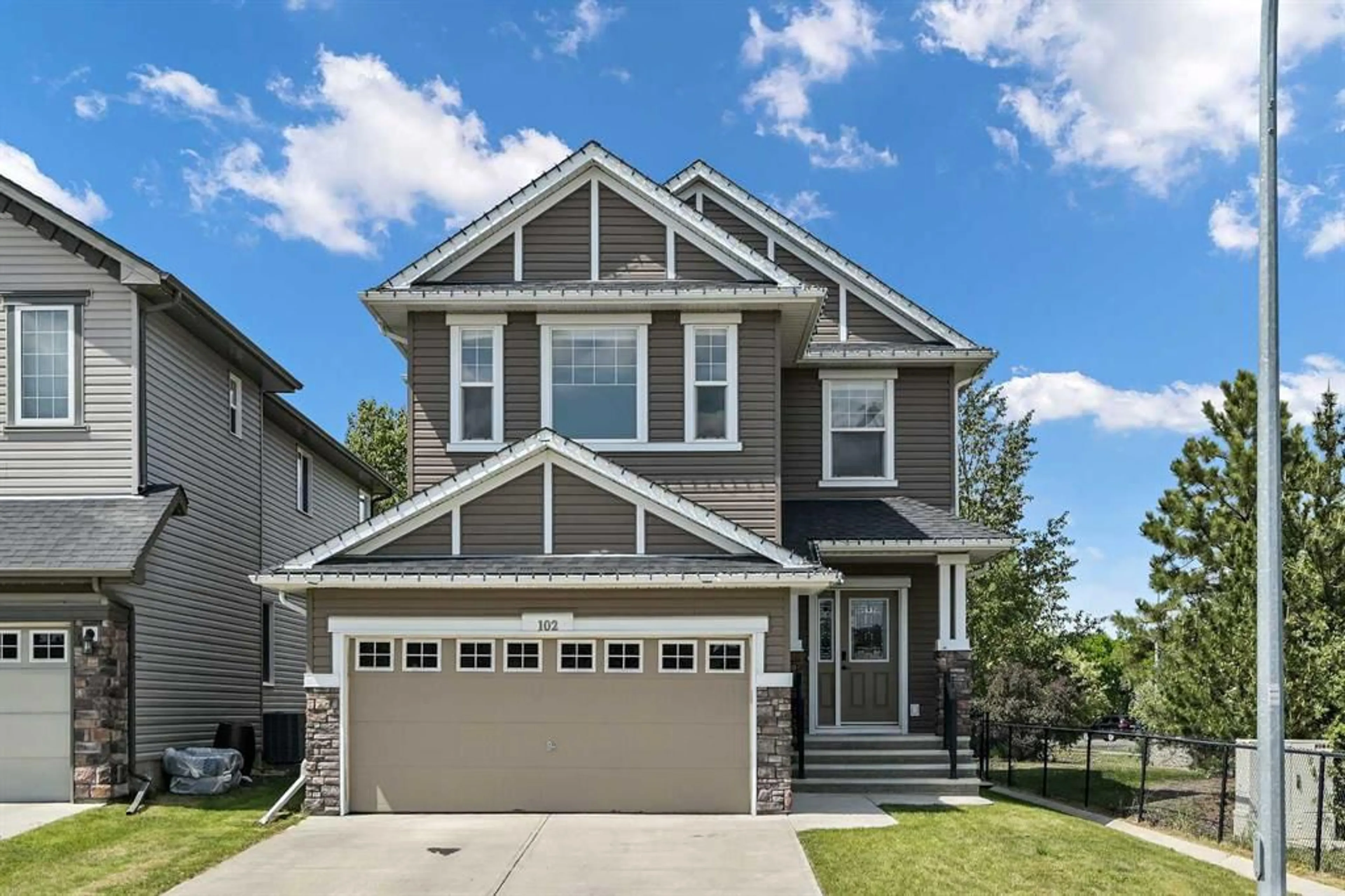 Ravenswood is one of Airdrie’s most family-friendly communities, offering quick access to schools including École Francophone d’Airdrie and Heloise Lorimer, as well as parks, pathways, and nearby shopping amenities. This professionally renovated two-storey home sits on a desirable corner lot backing directly onto a playground and walking path, giving you both privacy and green space views. The west-facing backyard features a large composite deck with glass railing, a private hot tub, and a storage shed, perfect for outdoor living and entertaining. Inside, you’ll find a bright and modern layout with updated vinyl plank flooring, fresh paint throughout, and stylish design touches like a custom accent wall in the main living area. The open-concept kitchen offers ample cabinetry, quartz countertops, a central island, and a pantry. Upstairs, the home features a large primary bedroom with views of the park, a walk-in closet, and a full ensuite with a jetted tub and separate shower. Two additional bedrooms, a full bathroom, and upper floor laundry add to the home's functionality. The fully developed basement includes a rec room, gym space, fourth bedroom, full bathroom, and a kitchenette area – ideal for guests or multigenerational living. This home is move-in ready and located in one of Airdrie’s most sought-after neighbourhoods.