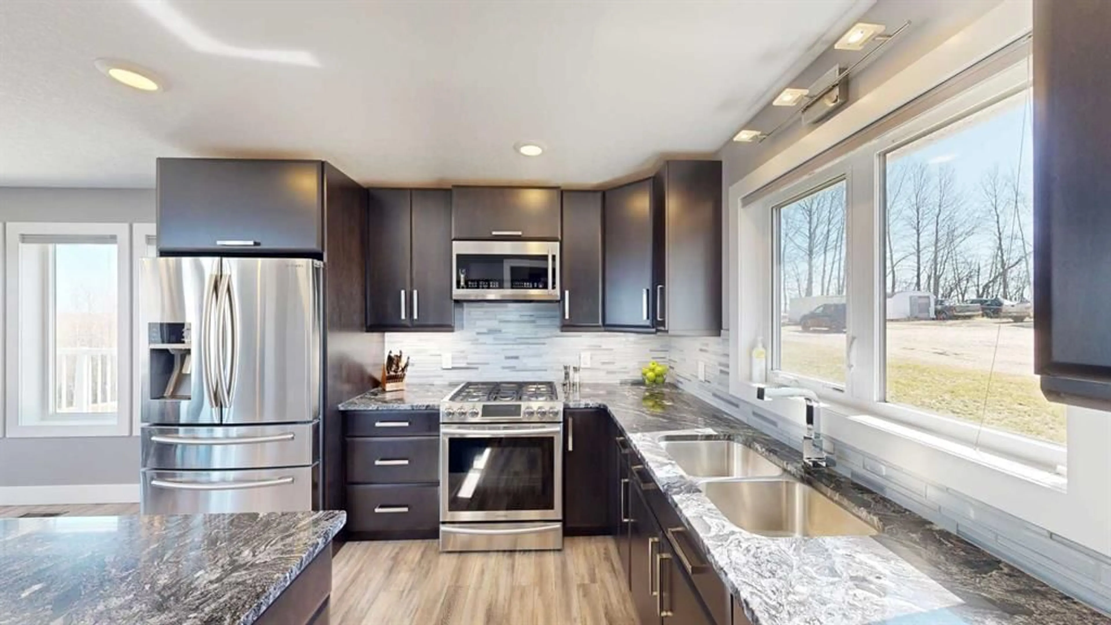 The open-concept kitchen and living areas are perfect for entertaining, with a natural gas line on the deck ready for your BBQ or patio heater. You'll also find granite countertops, stainless steel appliances, under-cabinet lighting, a walk-in pantry, and plenty of counter space.