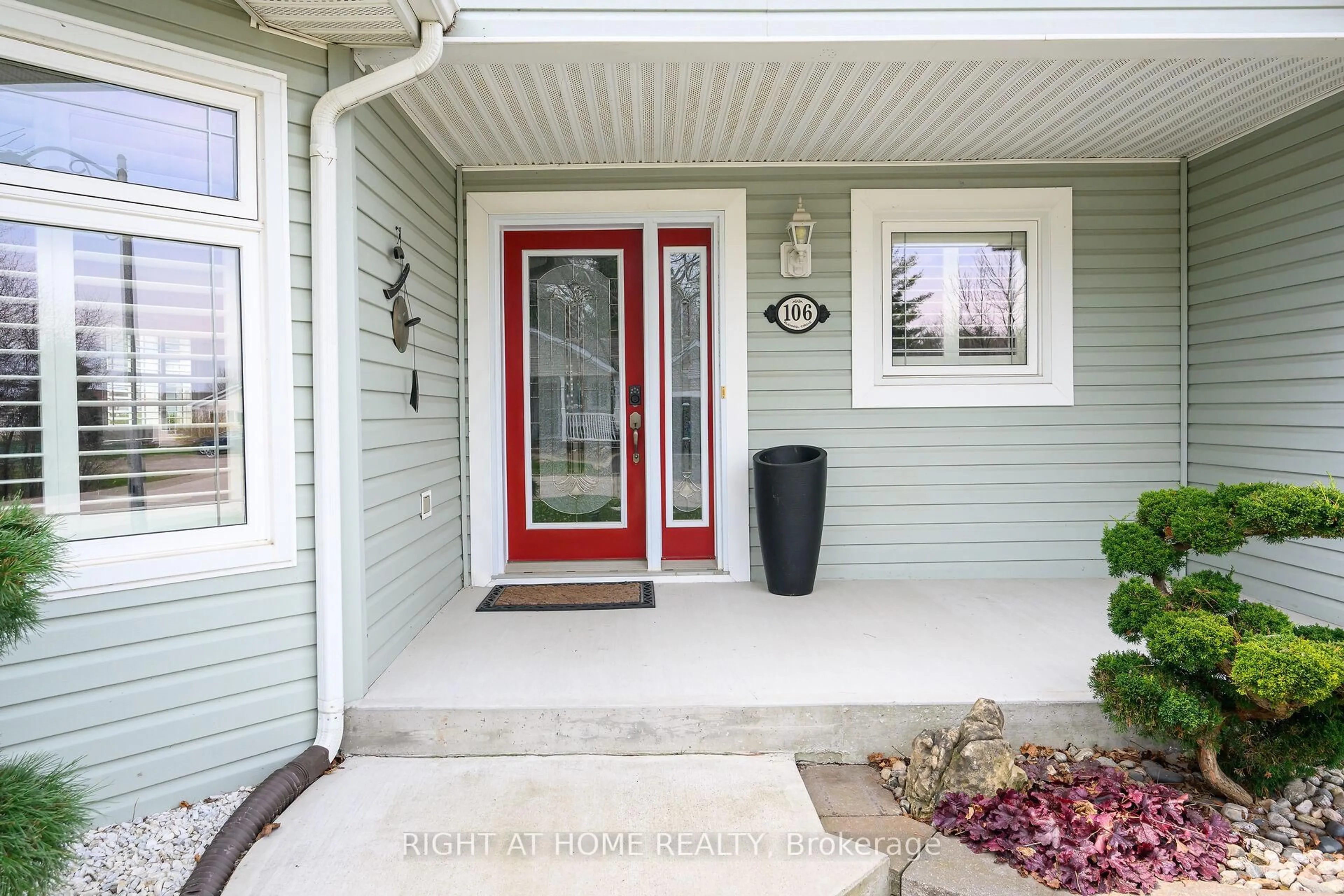 Welcome to 106 Bushmill, beautifully updated from top to bottom, located on the most coveted street in the desirable Antrim Glen Adult Community. Impeccably maintained home, offering ample main level living space and a professionally finished basement. This bright and open bungalow has gorgeous hand-scraped oak floors. The living and dining rooms flow seamlessly together, perfect for family gatherings. The updated kitchen is stunning with quartz counters, including a quartz waterfall island with seating, custom cabinetry, quality appliances and a view of your award winning gardens. The cozy family room overlooks the backyard and has a walk out to your very private composite deck with screened in gazebo and stone patio. The landscaping and gardens are breathtaking, the proud recipient of several awards! The curb appeal is 10+ with your charming front porch and cascading water-feature. An in-ground sprinkler system provides carefree maintenance. Back inside, the main level offers two spacious bedrooms, including a primary retreat with walk-in closet, and two full bathrooms including a dreamy soaker tub. The updated glass railing leads you to the finished basement, featuring new carpet, two large bedrooms, a recreation room, two piece bathroom (with space for a shower) and a utility room with lots of storage. The home has been freshly painted in neutral designer decor. Custom window coverings adorn the windows. Attached garage with access through the main floor laundry room as well as to the backyard. Antrim Glen is conveniently located between Waterdown, Cambridge and Guelph. Offering a vibrant lifestyle community with heated salt water pool, sauna, BBQ area, a lounge and kitchen for large gatherings, billiards, shuffleboard, library, craft room, horseshoes, private vegetable garden plots, and wooded walking trails. Move in ready, all you need to do is unpack, relax and enjoy!